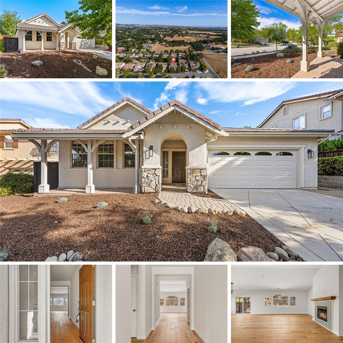 Welcome to your well-maintained Westside Templeton home in Peterson Ranch. Step inside and experience the elevated warmth of real oak hardwood floors and a spacious open floor plan framed by cathedral ceilings, perfectly blending comfort and style. The inviting layout features a sun light-filled kitchen and dining area at one end, which opens to a living room with a warm, low-maintenance gas fireplace. 730 Rosebay Way is ideal for both everyday living and entertaining. With a split-wing design, the large primary bedroom becomes its own retreat. The primary bathroom includes stone counters, stone flooring, and a custom walk-in tile shower. On the other side of the home, a hallway provides privacy to the two additional bedrooms and the guest bathroom. Large windows in the living area offer views of the expansive backyard and sloped hill adorned with beautiful trees. The Peterson Ranch Garden neighborhood’s charm shines with tree-lined streets, sidewalks, and access to award-winning Templeton schools. Imagine celebrating the holidays here and making lasting memories in your new home!